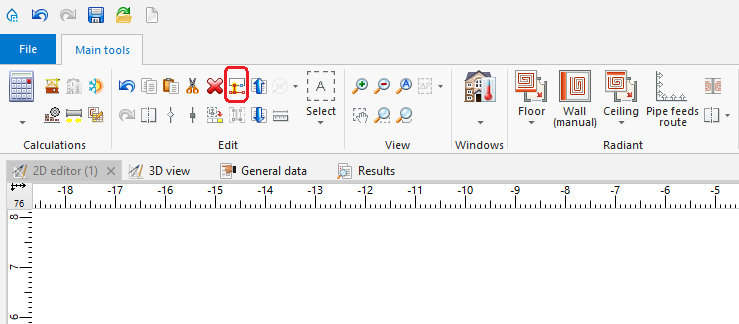 Operacja Automatycznie podłącz odbiorniki dostępna jest w programie w oknie Edytor 2D na pasku Narzędzia główne w sekcji Edycja, dla aktywnych zakresów edycji Podł./Ścienne, Sufitowe lub Konwekcyjne
