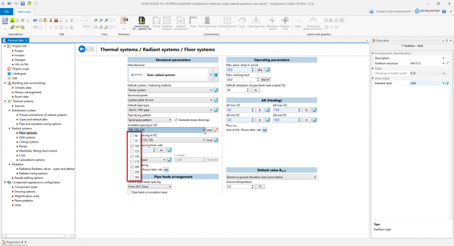 Komunikat jest wyświetlany, jeśli program nie potrafi dobrać odstępu układania rur z listy wariantów dostępnych dla systemu:
