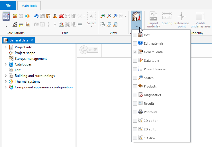 - Kompozycja do pracy z projektem na etapie wypełniania danych w oknie Dane ogólne.