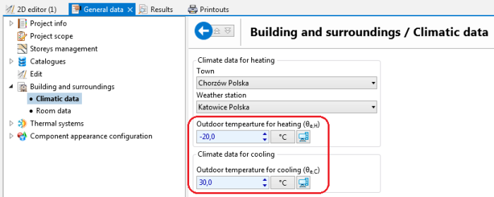 1. Przejść do Dane ogólne/Budynek i jego otoczenie/Dane klimatyczne.