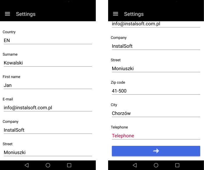 • KROK: Uruchomienie aplikacji i uzupełnienie profilu użytkownika.