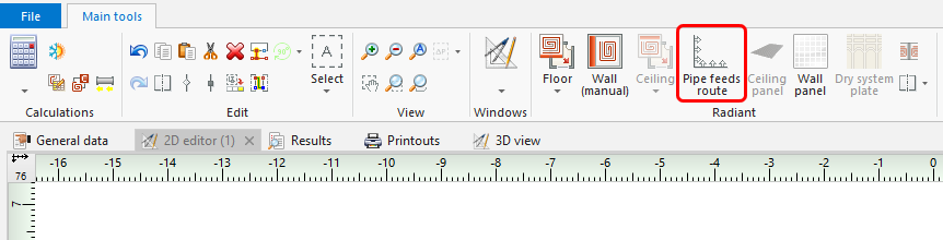 - Element Trasa przyłączy dostępny jest w programie w sekcji Płaszczyznowe na pasku Narzędzia główne, dla aktywnych zakresów edycji Podł./Ścienne lub Sufitowe.