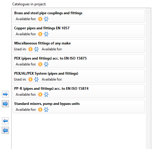 W trakcie pracy z projektem, w odpowiednich lokalizacjach, będą możliwe do użycia tylko produkty z katalogów wybranych do projektu.