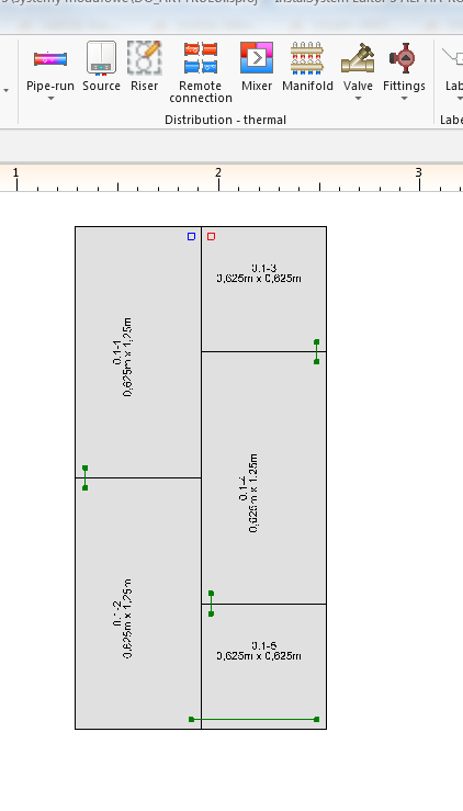 Projekt zawiera strukturę budynku (kondygnacje, pomieszczenia) wraz z rysunkiem rzutu kondygnacji. Zostały określone wartości zapotrzebowania mocy grzewczej/chłodniczej pomieszczeń.<br/>[http://download.instalsoft.com/public/helpsystem/SUZ/SUZ-RHP-Design-of-installation-with-panels-system/Installation-with-panel-system-in-commercial-building.isproj Stan początkowy, isproj] | |||