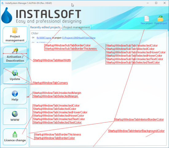 - StartupWindowTabBorderColor - ustawienie koloru ramki przycisku (wg palety RGB).